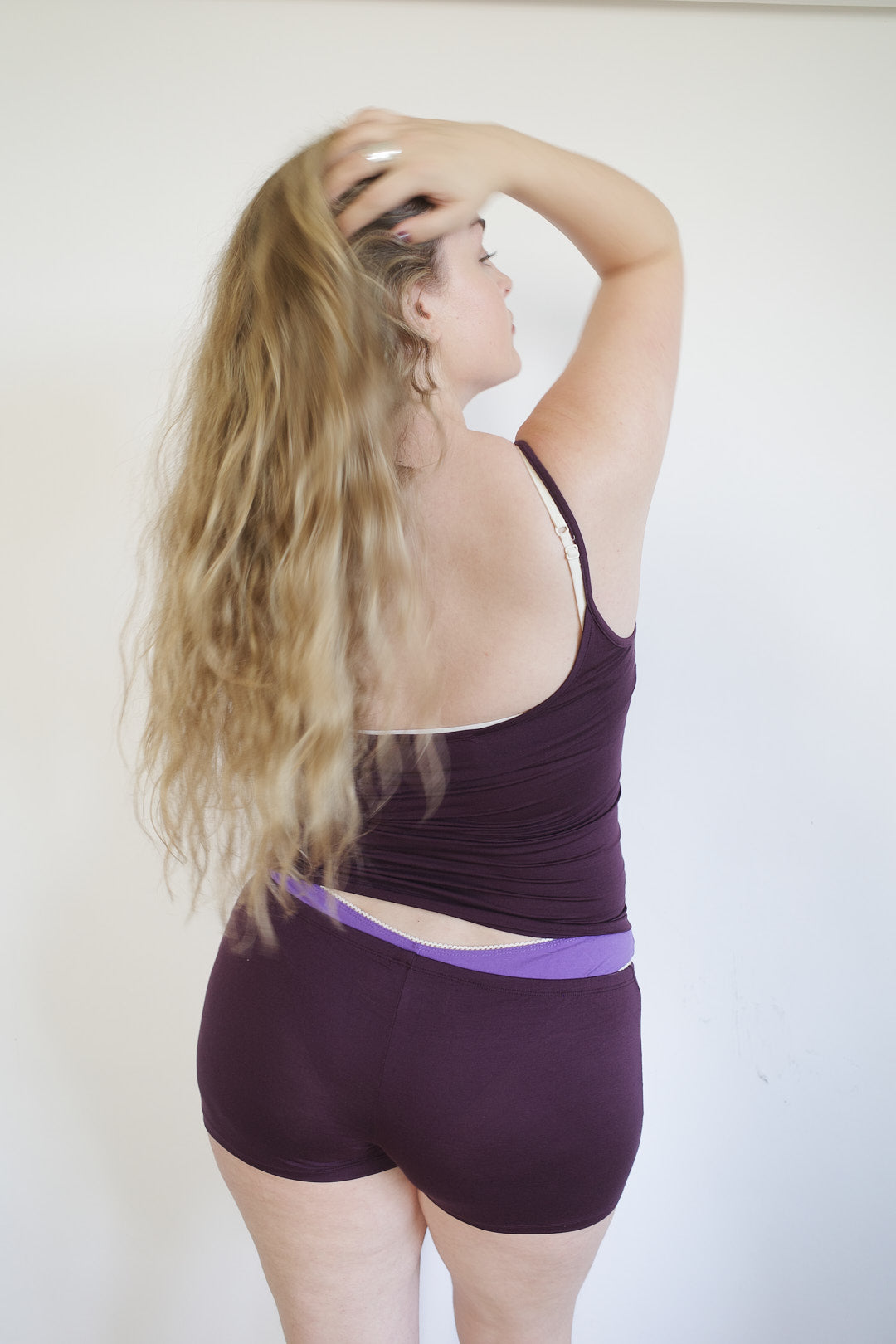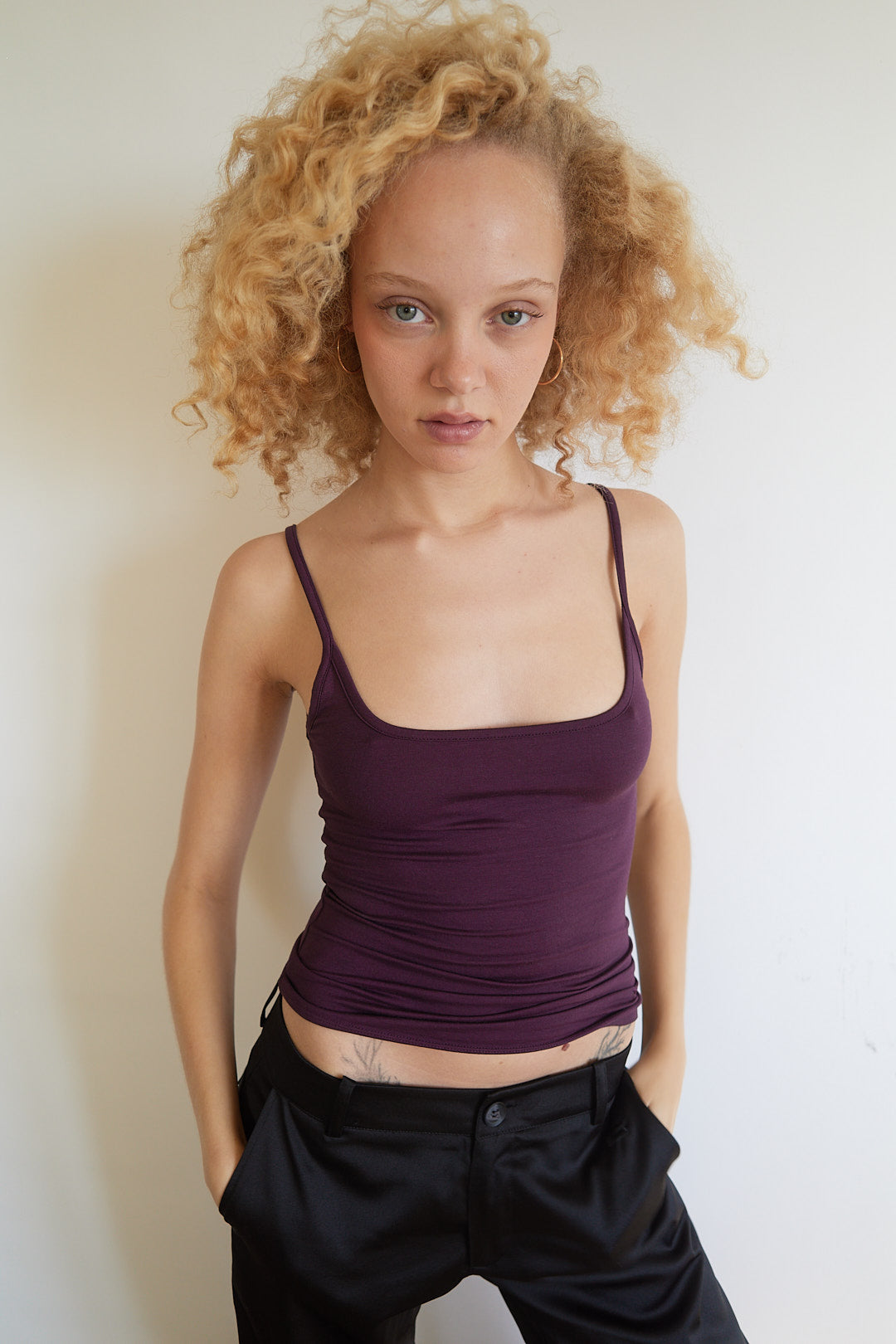 · buttery soft · tight fit · deep neckline · spaghetti straps · tonal G embroidery
