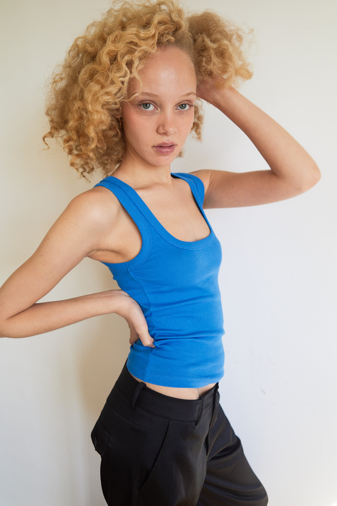 · stretch cotton rib · scoop neckline · slim fit silhouette · soft and breathable · tonal “G” embroidery detail