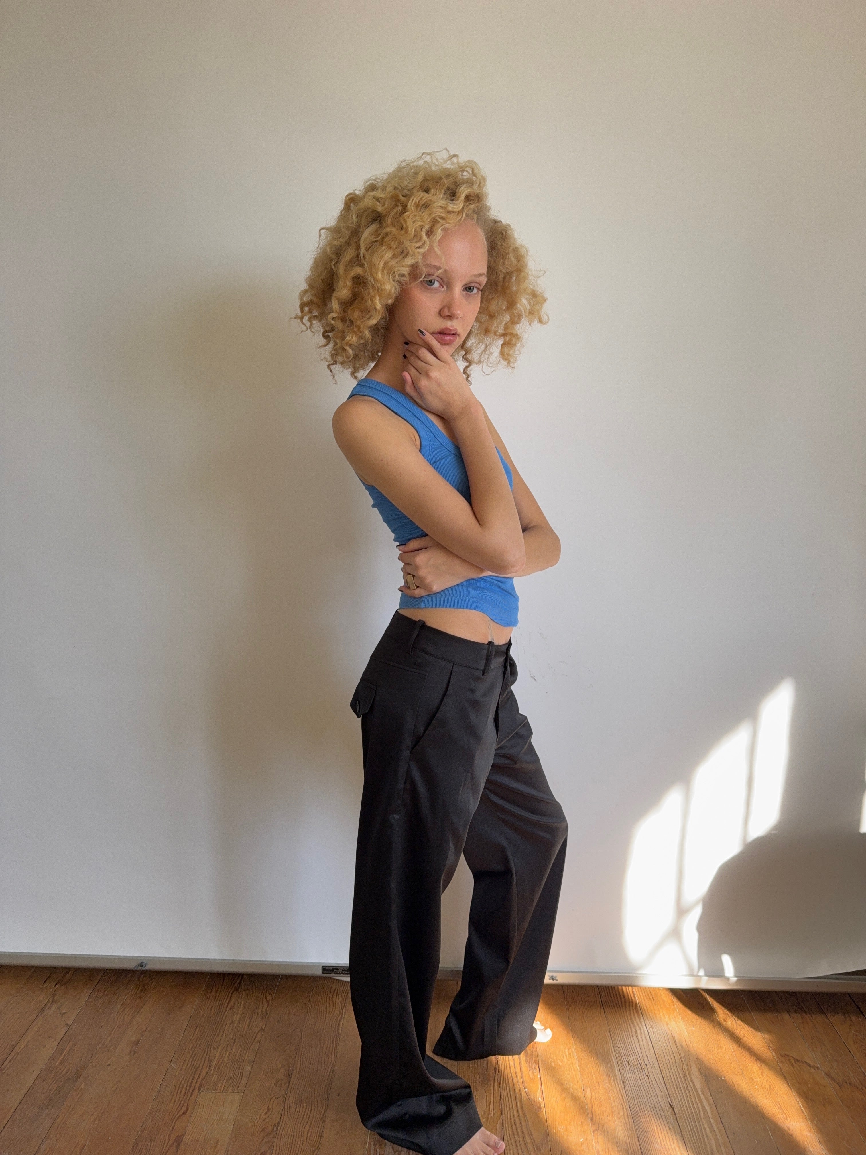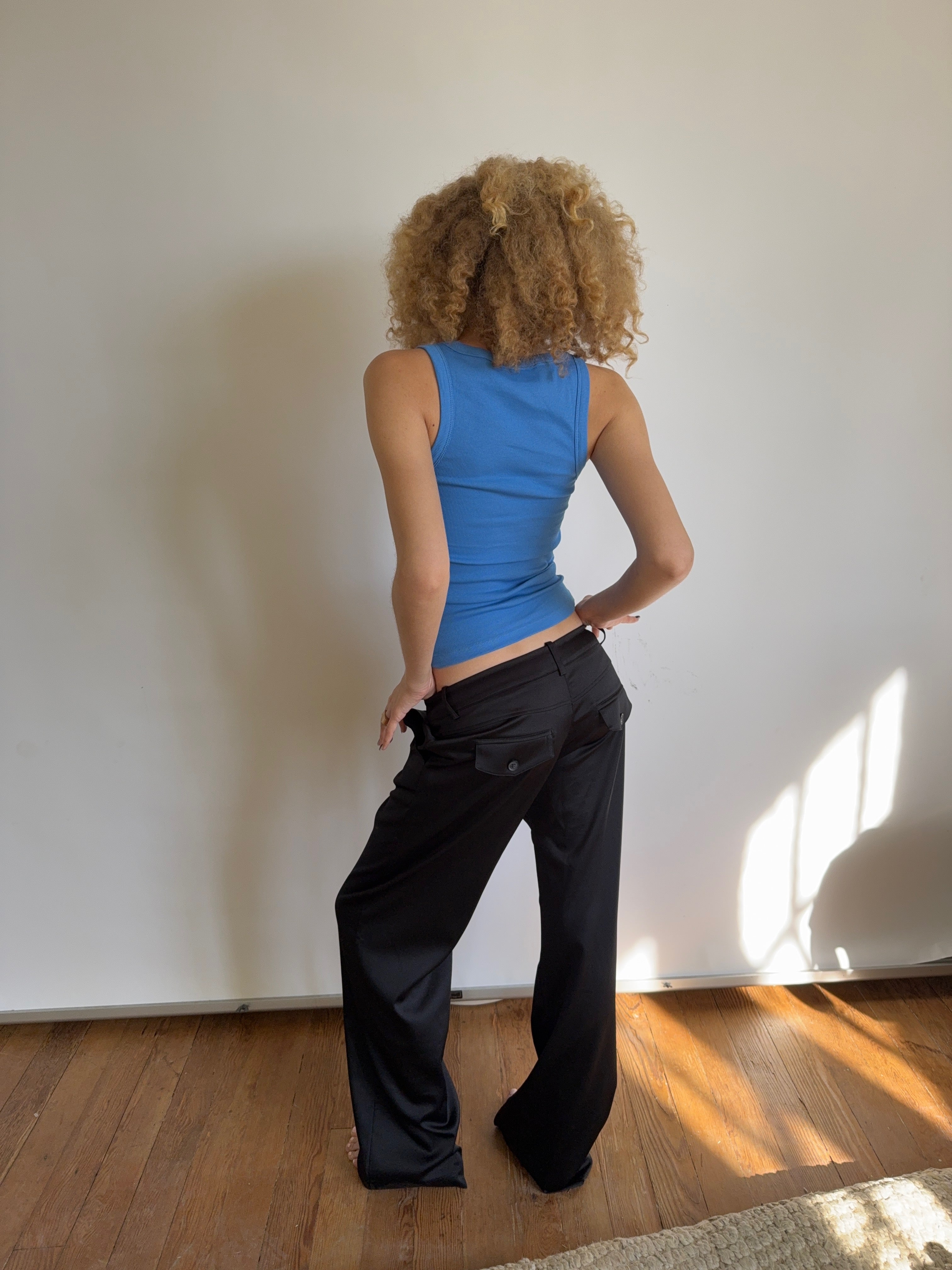 Black satin tailored pants